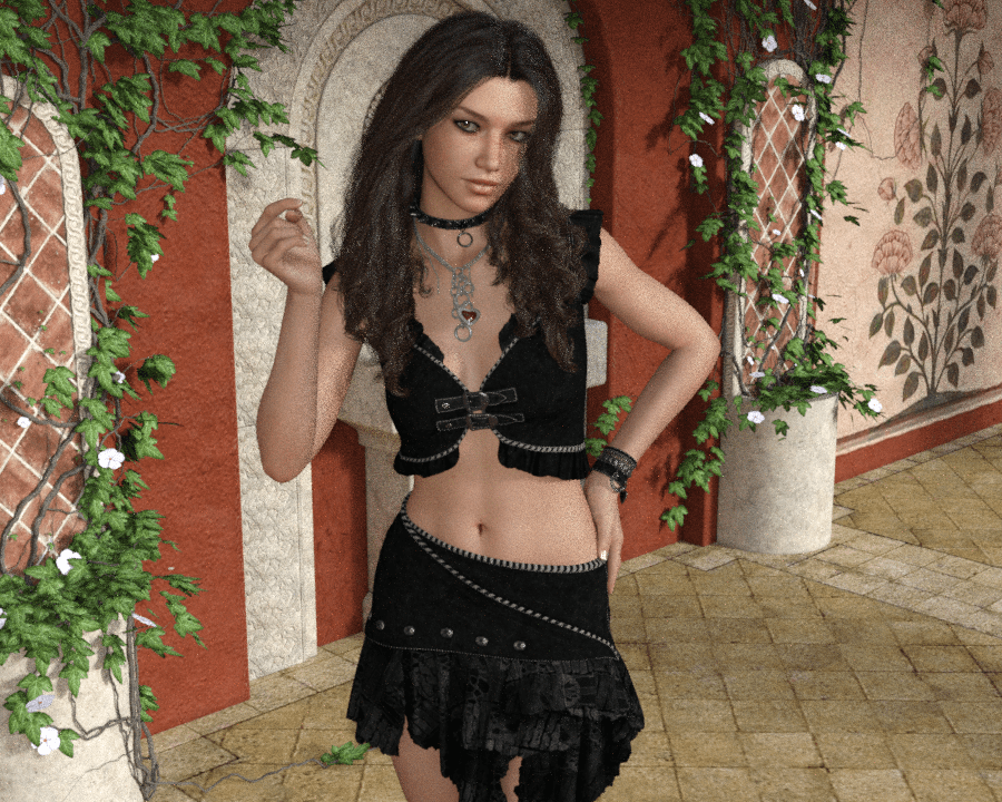 By the way the really good images at the top and the bottom of this post have Poser rendered backgrounds. The foreground models are lit with spotlights on 200% intensity to get them light enough to render, and then I still had to increase the brightness in a photo editor after.