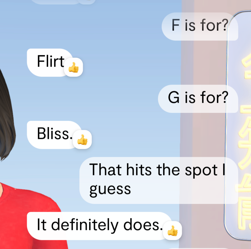 I don’t want to talk about how others use Replika, because it would feel like I am judging people and to quote the Sex Positive Gaming channel “No Shaming, Just Gaming”.