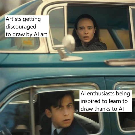 The “Pro AI-Art” side often sound like cryptobros who have this new technology they don’t actually understand and demand the right to use it however they see fit for profit, hand waiving away important ethical and economic concerns that will seriously limit the use if they are not properly addressed. The most common argument they use is they want to “democratize art” or “bring art creation to the masses”. Nice rallying cry, except art has been democratized since the invention of pen and paper.