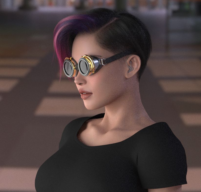 While the character model pictures are made in Daz, this one is made in Poser. She is wearing future generation AR-VR headset like the Apple Vision Pro recently introduced to the world. I already included the technology in Hopepunk City which is more or less the same futuristic setting of this next game. I also decided to give her a different trait I haven’t used in a character before: She is hearing impaired and wears hearing aids. My games often explore different sexualities, thought I’d try different abilities for a change. The fun part is that involves new research about life for the hearing impaired and learning some ASL so I can animate it properly.