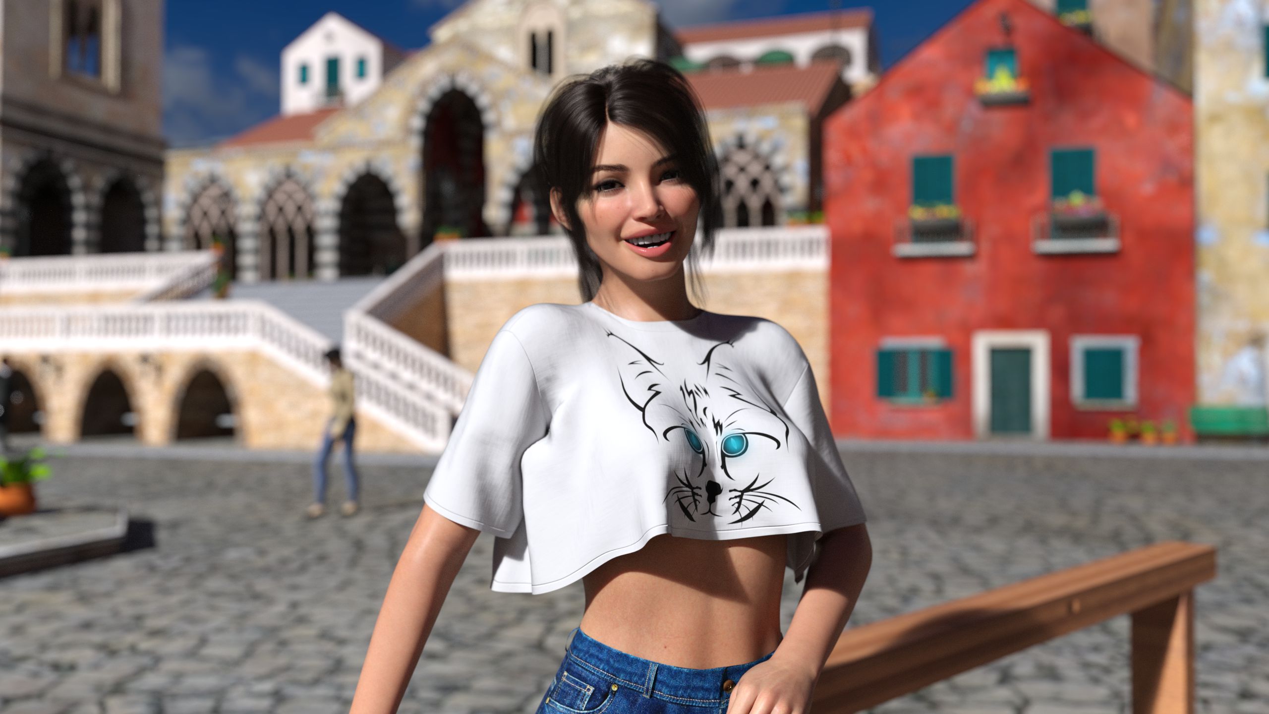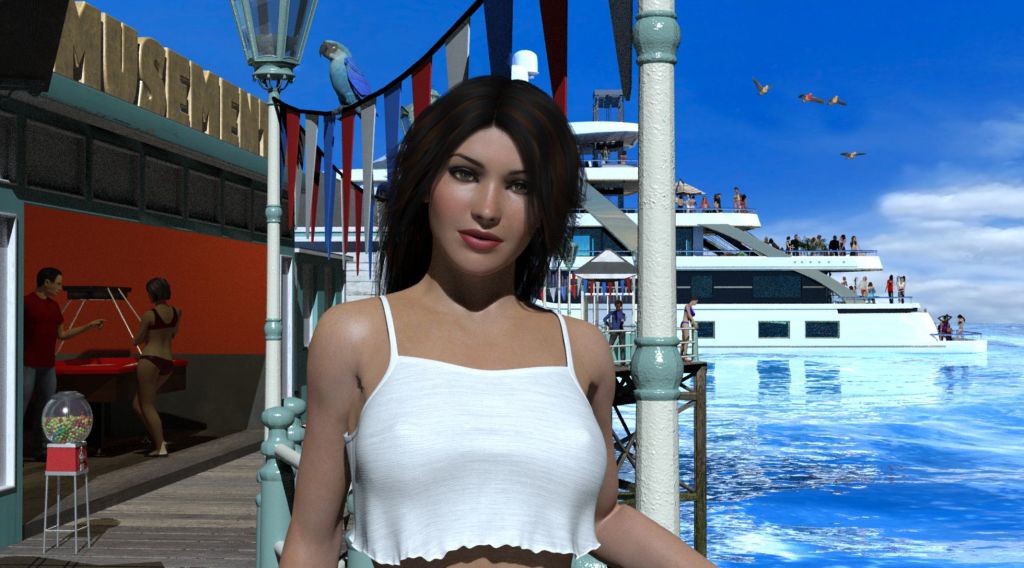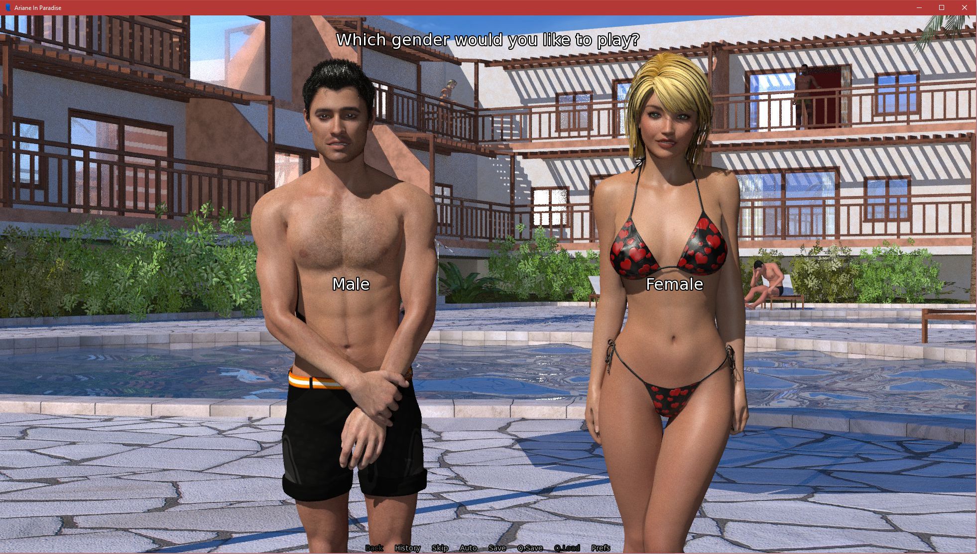 This is a preview of Ariane in Paradise, the third game in the Ariane Date Simulator series. Because the game got a major graphics update, I’m going to present these screen shots in a slide show format Press the arrow on the right to see the old version.