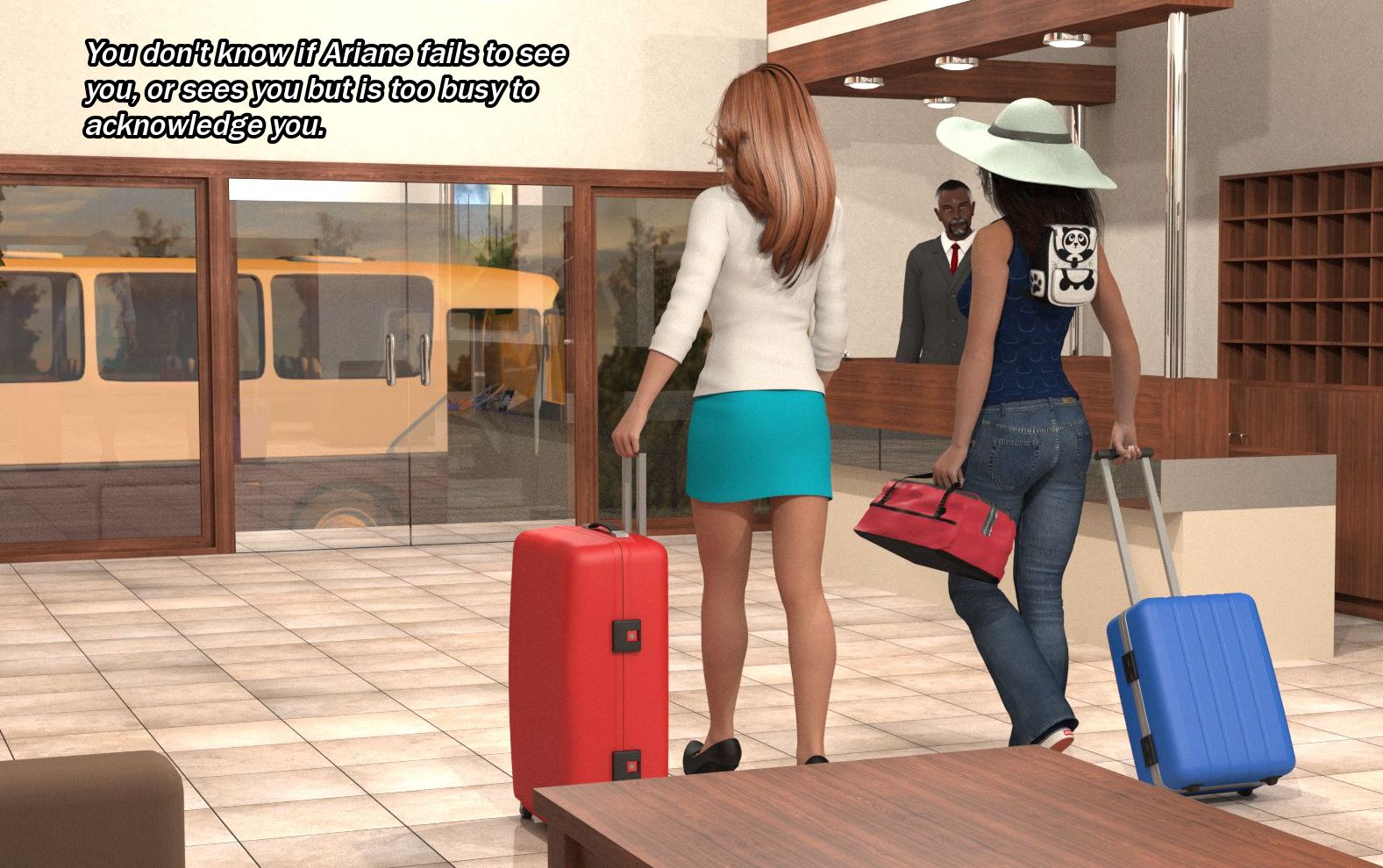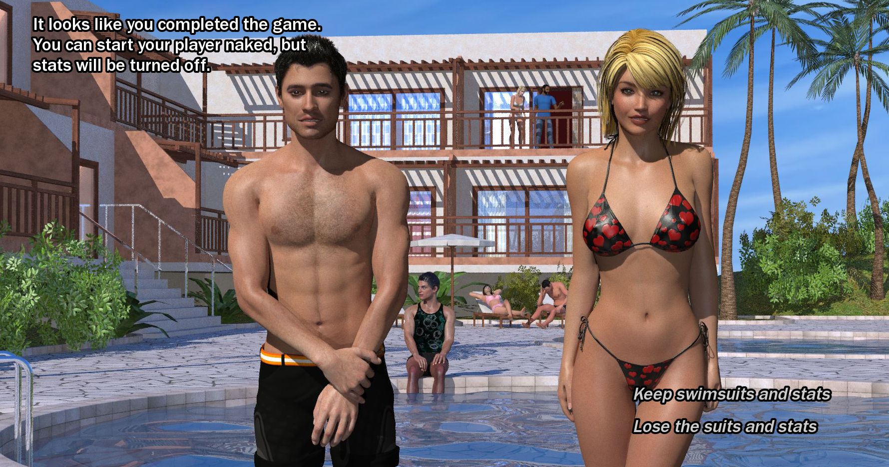 - You start the game as a naked character, so you meet Ariane naked and spend the whole opening naked. This encourages Ariane to remove her bikini faster during the intro discussion.