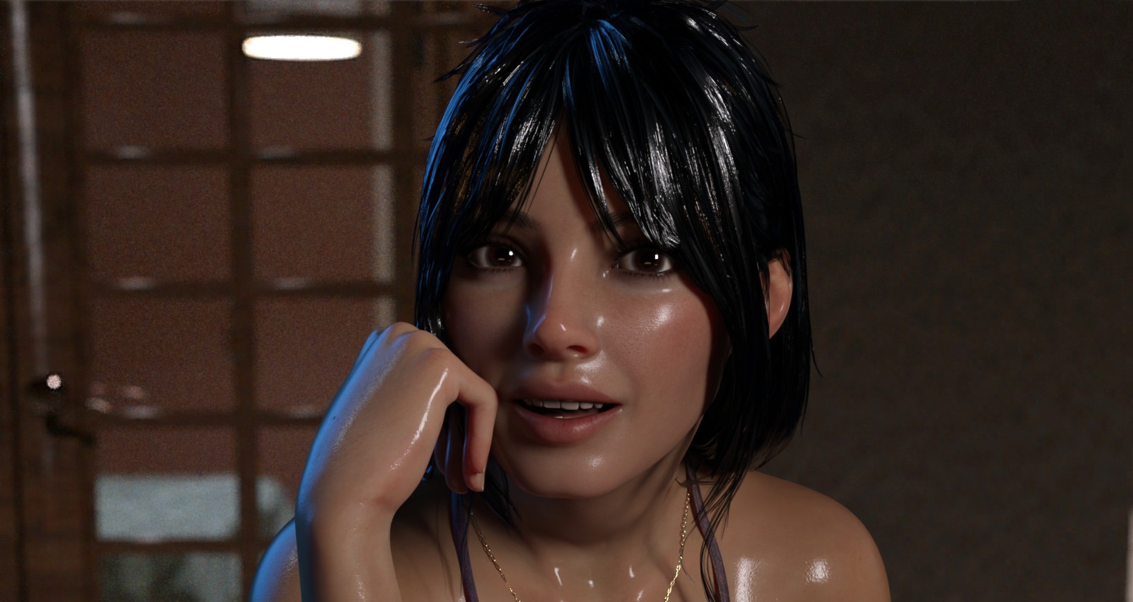 Go to the bedroom to put on a swimsuit Wait for her in the hallway Get in the hot tub Suggest playing “Truth or Dare” Truth or Dare (does not matter) Yes or No or Finish dare (does not matter) (Pick a question, does not matter) (wait for her to finish answering) Dare End dare Dare her to take her top off Dare Dare her to get naked Kiss her nipples Massage her thigh Rub her pussy