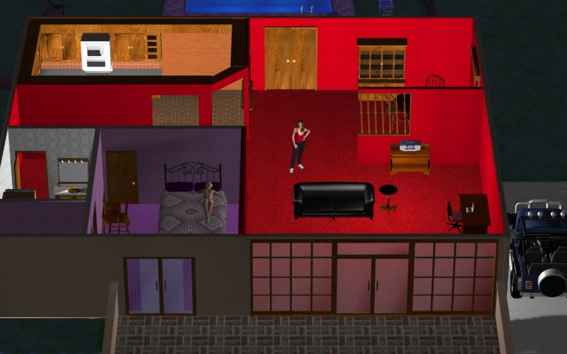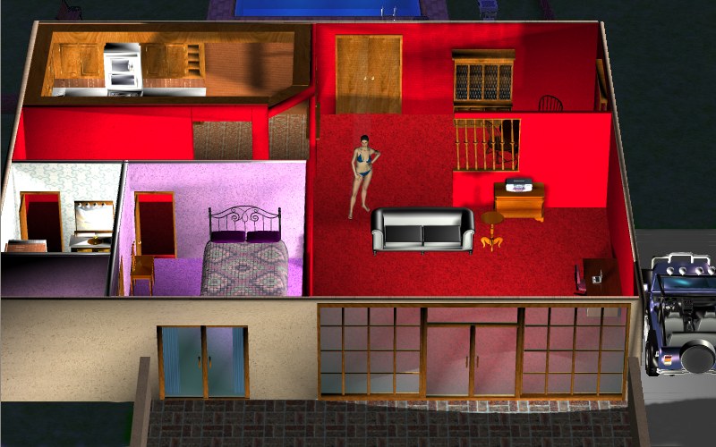 Used in the very earliest versions of the game, you clicked on what room to go to the house next. The earliest versions never left the house.The next upgrades involved adding a backyard to swim or hot tub, and a car you could use to drive downtown.Around version 5, I added a picture of Ariane in whatever her current dress state was in the map imageVersion 6, I improved the lighting of the mapVersion 7 added Rebecca sleeping on the bed if you brought her back to the house.New house in 10th Anniversary edition meant no overhead view and the introduction of different menu pics depending on the current state of dress of Ariane, and what activity you did previously.Re-rendering project for the Renpy version increased the lighting quality of the map picturesDate Ariane Remaster has fewer “map” images, only one per dress status, as the previous 4 per dress status often got a bit too complicated.After featuring the new “casual” outfit and the new “formal” dress, here is the new “swimsuit” which is the same as the old swimsuit. It also gives you a nice angle of the new house.Date Ariane Remastered uses fewer images for it’s map. One per dress status.