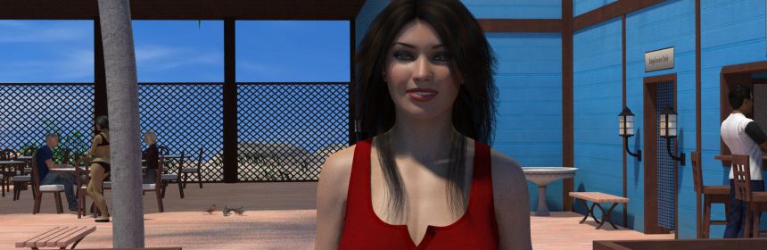 Rounding up the month of Ariane in Paradise pictures with the very last picture I made for the game when finishing up the 1.10 expansion I released last month. The new ending is hard to get to, but it consists of a nude pool party with almost every character in the game present. You get there by 1.) getting all
