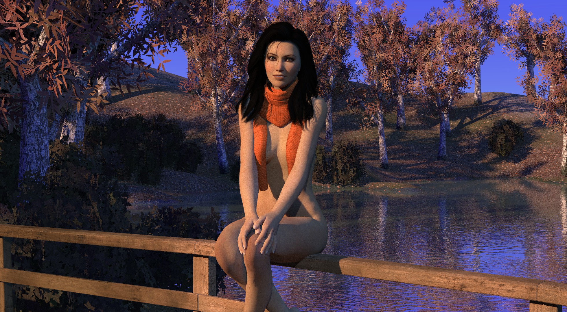 Ariane gets undressed wearing nothing but a scarf.