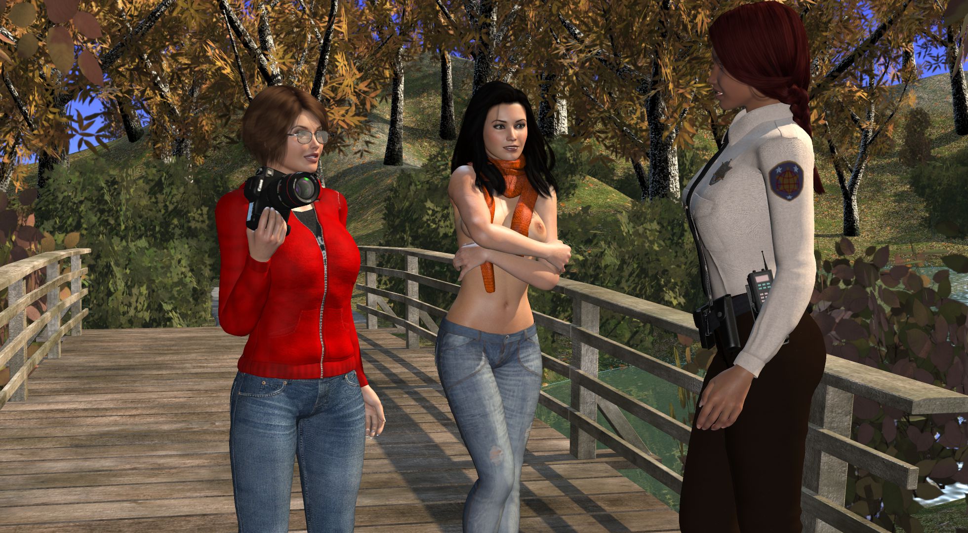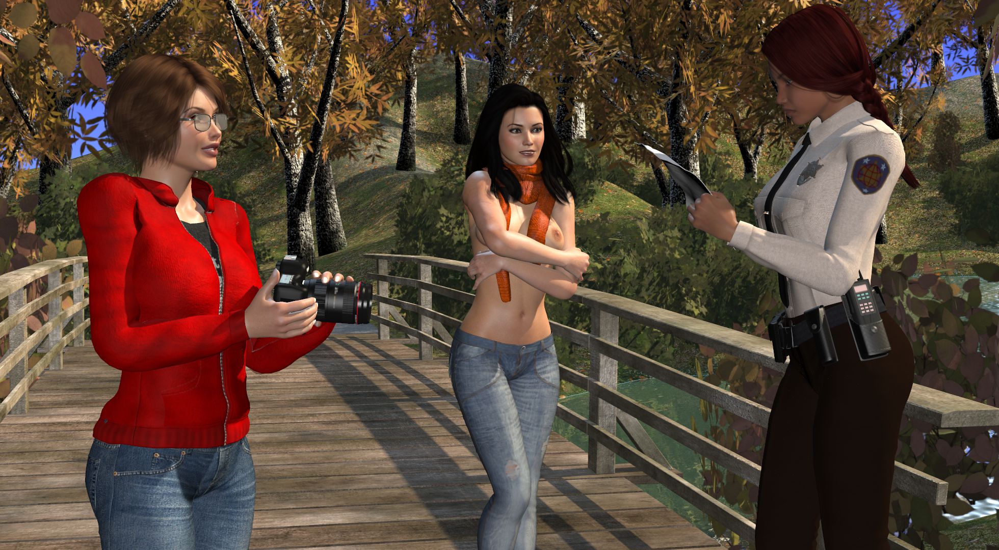 “Um, in case you haven’t noticed, we are in an all terrain vehicle. We don’t need roads!” exclaimed Ariane before adding, “But, isn’t a state park a bit too public for a nude photo shoot?”