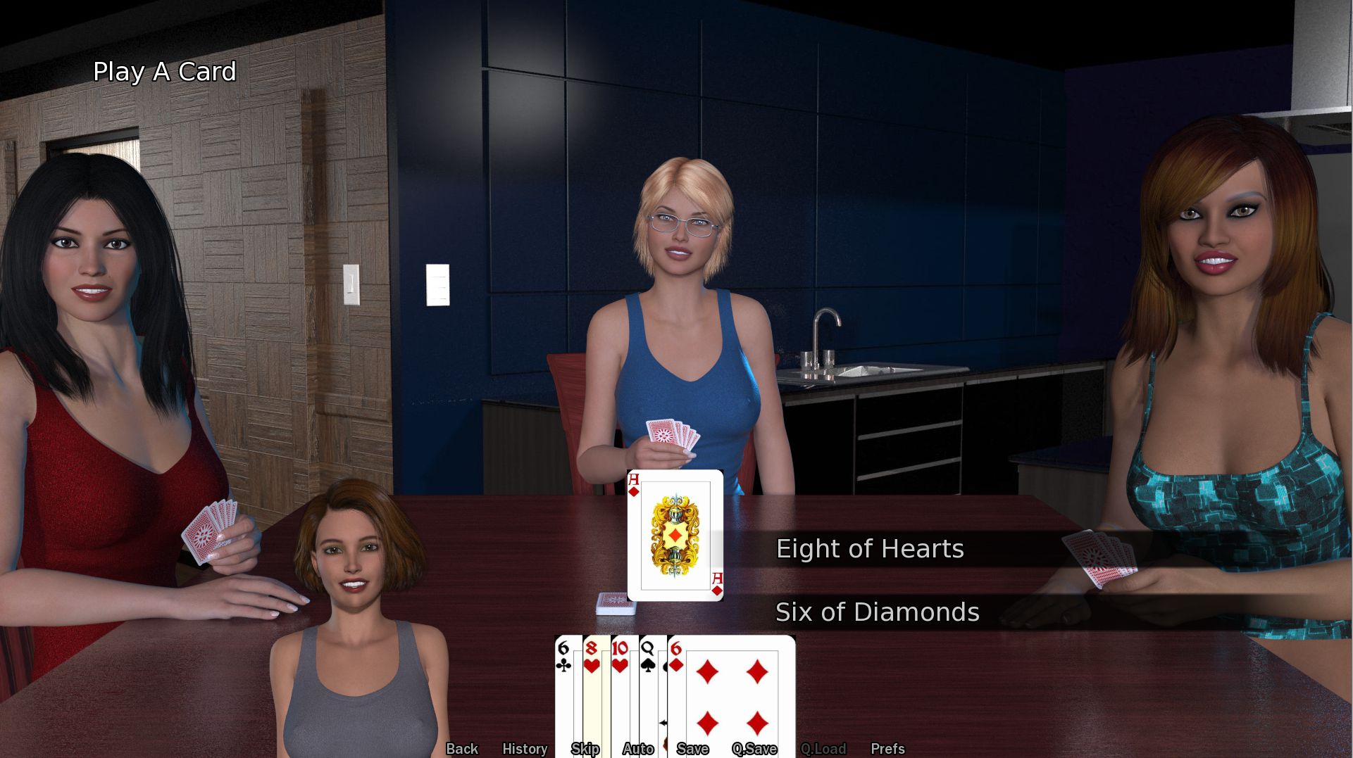 Strip Crazy Eights is a game within a game extracted from the forthcoming Hopepunk City. It is an addictive, fast paced short card game (typically two to five minutes) involving trying to get your opponents naked.